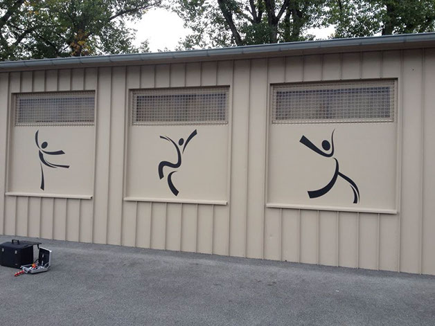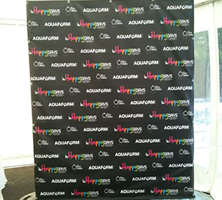 Impression et pose du visuel du fond sur bâche et devant de scène sur Forex.