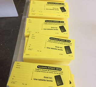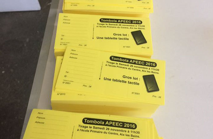 Réalisation de tickets pour tombola pour APE Aix-les-Bains